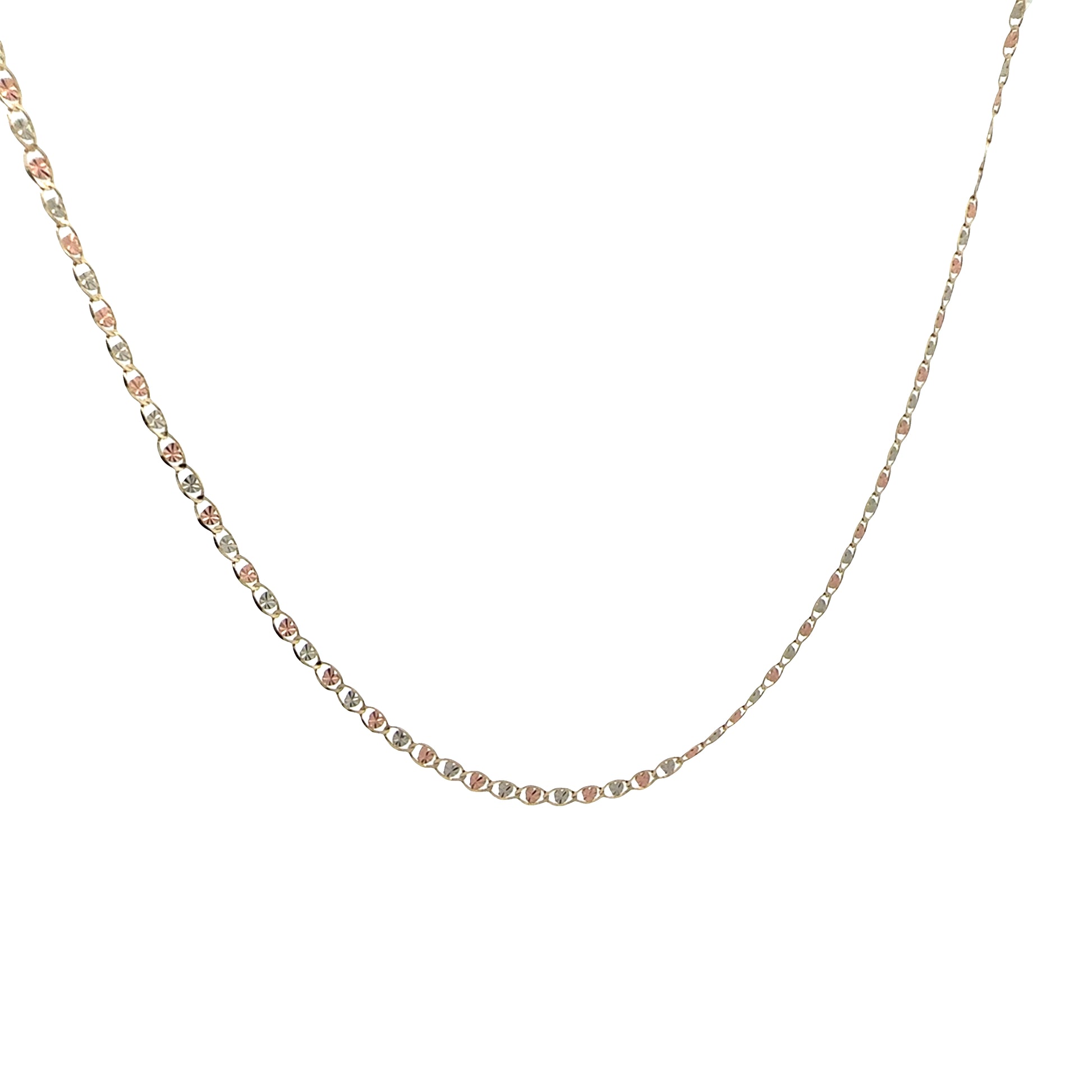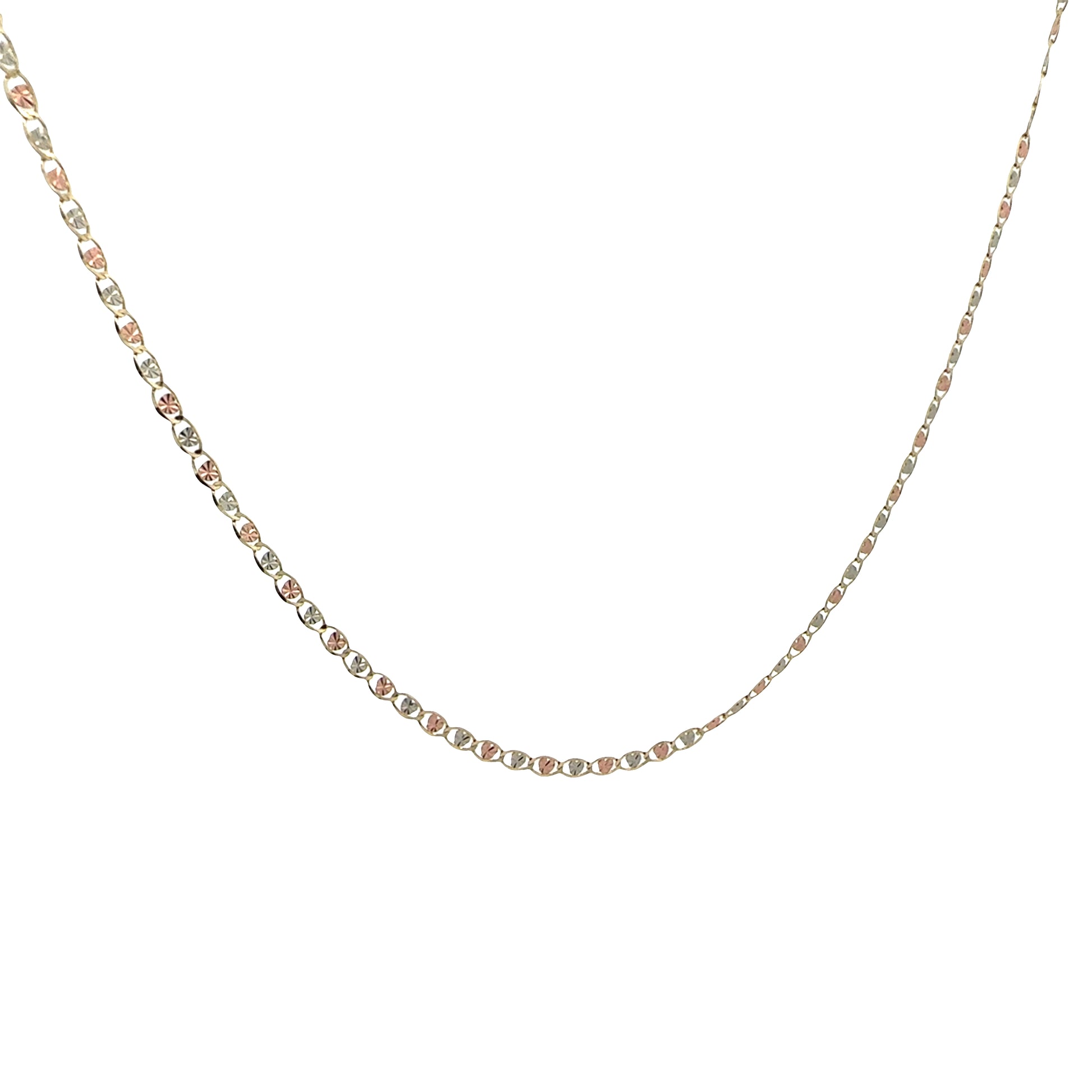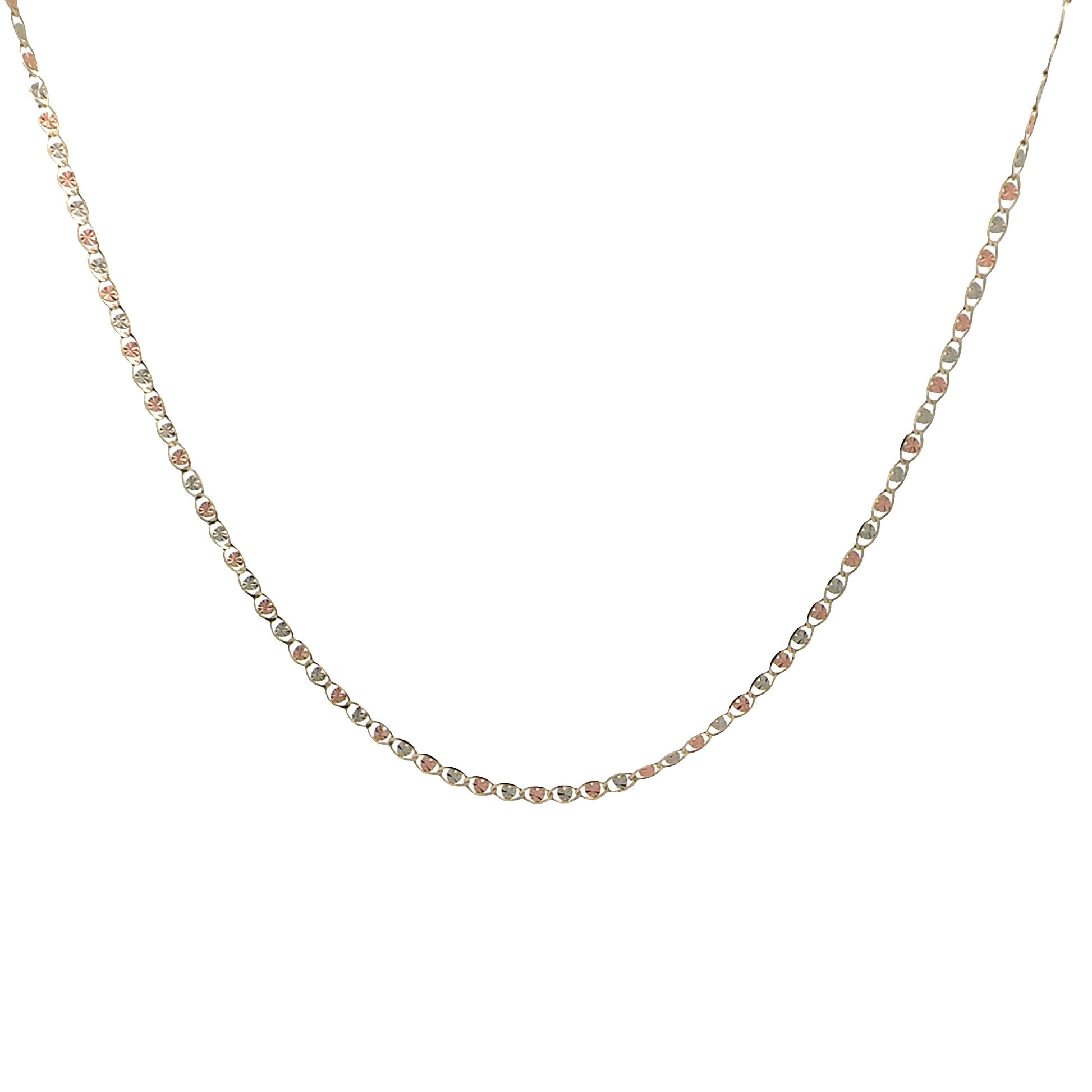 A refined take on a classic chain, this 14K tri-color gold Valentino heart-link necklace brings soft movement and subtle romance to any neckline. The 20" length sits gracefully on the collarbone, while the slim 2.6mm profile and 3.1-gram gold weight keep it light and comfortable for everyday wear. Warm yellow, white, and rose gold tones play together for a versatile piece that layers beautifully or stands on its own.
