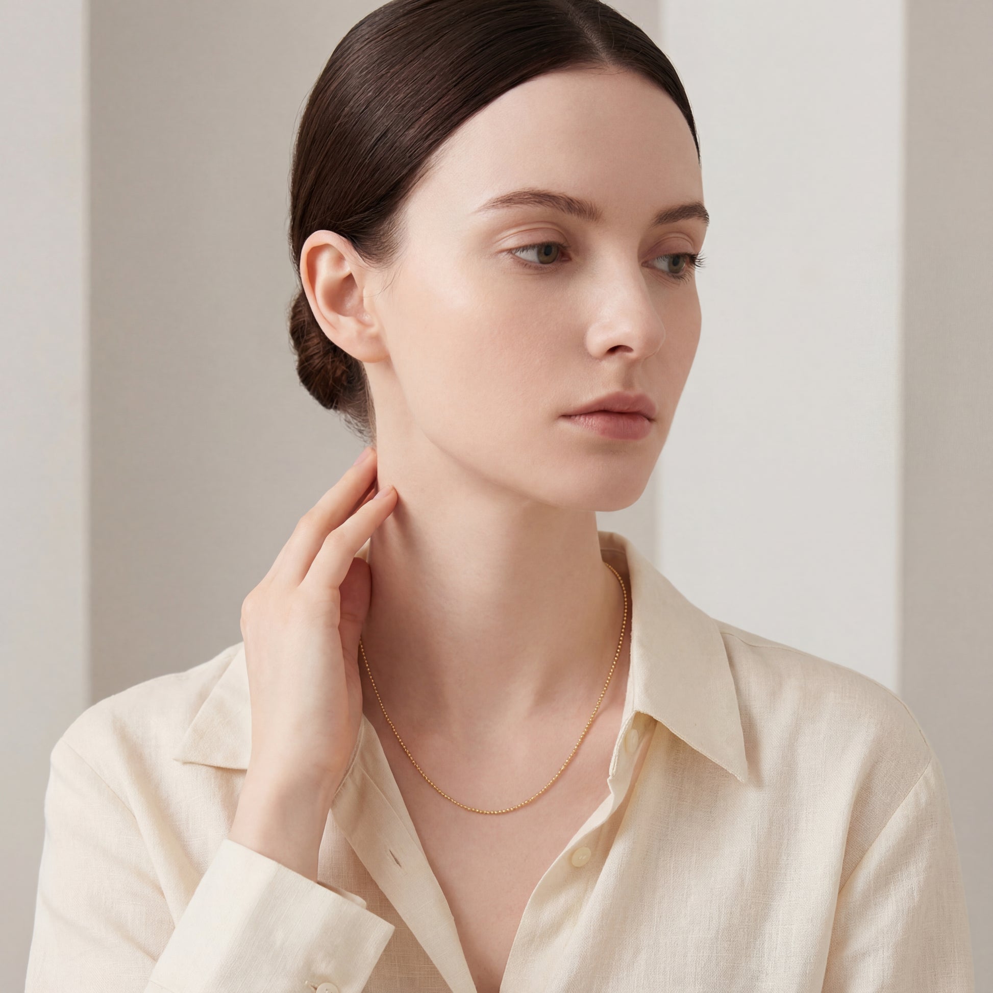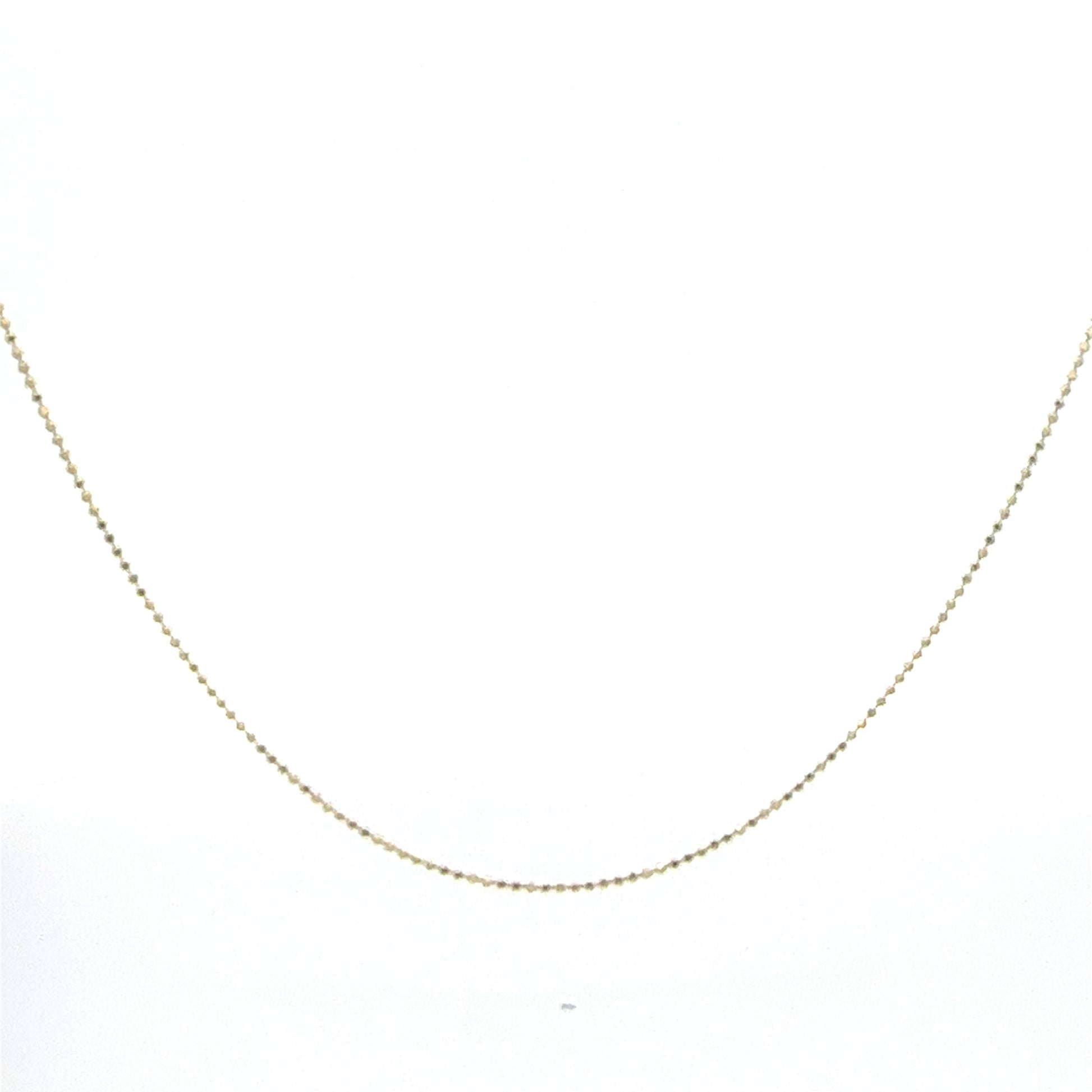 This delicate 14K yellow gold diamond cut moon chain adds subtle sparkle with its slim 1mm design and classic 18 inch length. Lightweight and refined, it offers an effortless accent whether worn alone or layered with your favorite necklaces.
