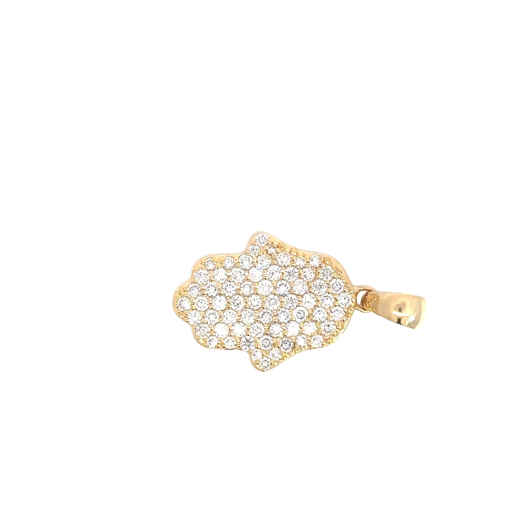 Add a touch of meaningful elegance to your jewelry collection with this stunning 14K Yellow Gold Hamsa Pendant, featuring 2 carats of lab-grown diamonds in a radiant F color, VS1 clarity. The Hamsa, a symbol of protection, blessings, and strength, is beautifully brought to life with a pavé setting that sparkles from every angle.