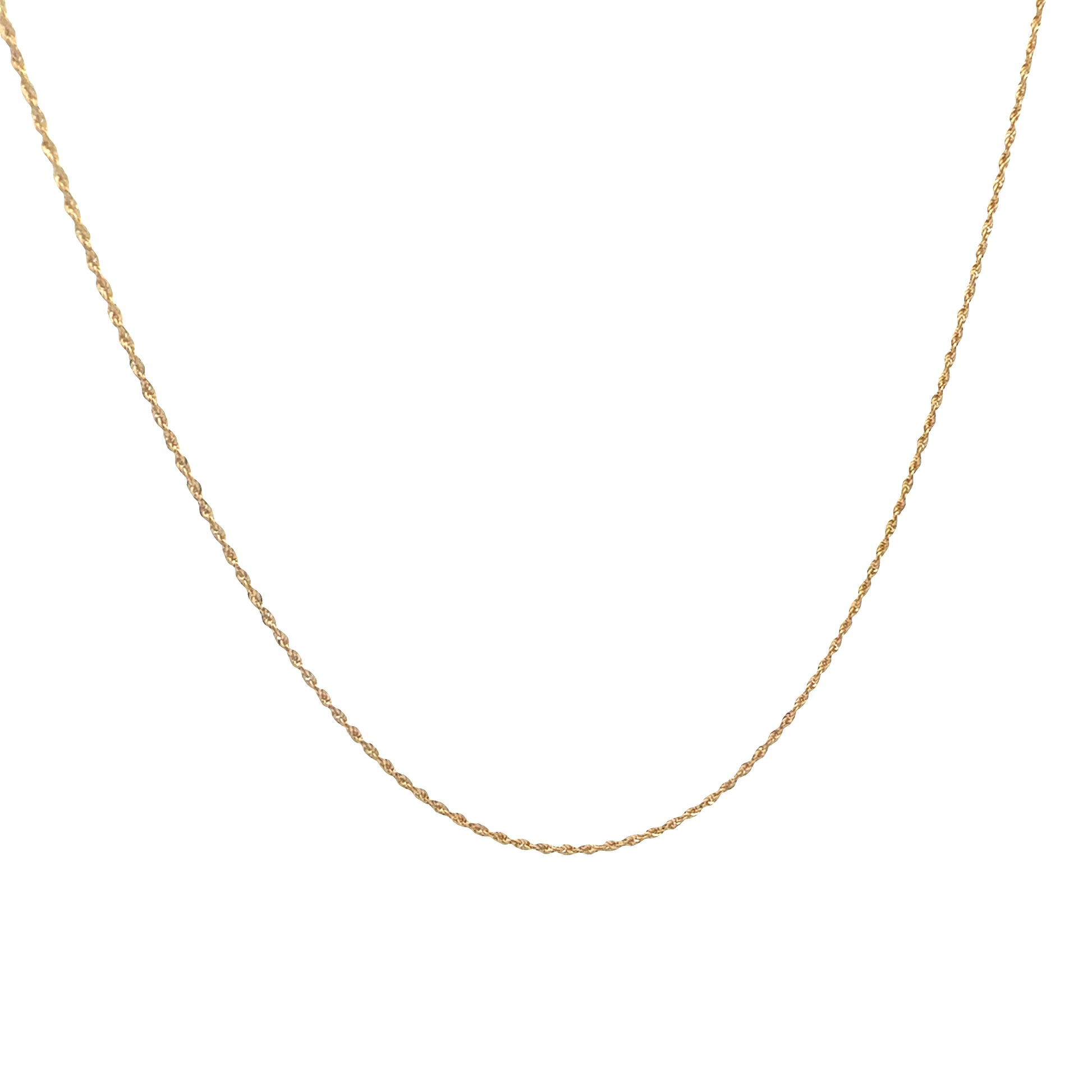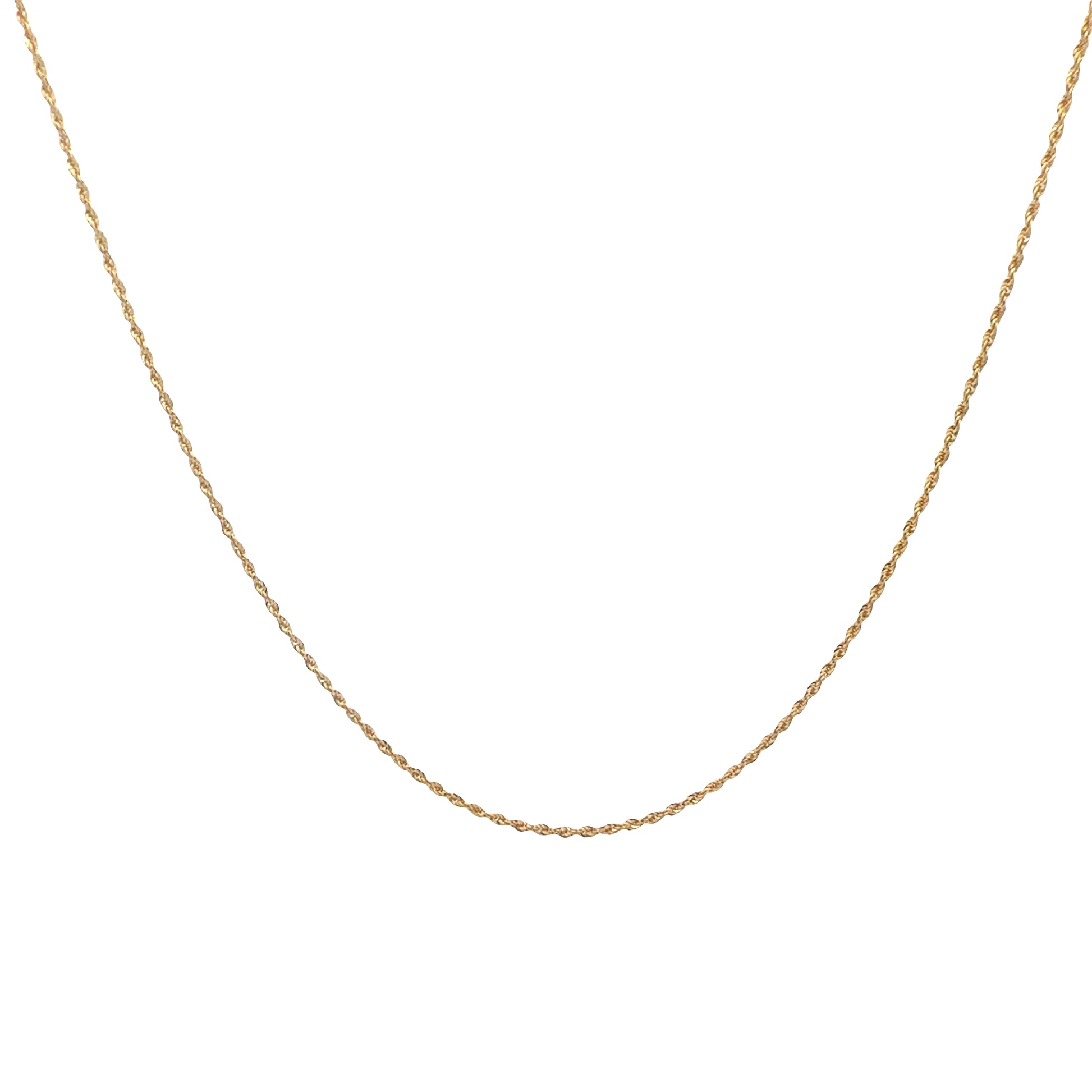 Elegant and radiant, this 18K yellow gold diamond-cut rope chain necklace measures 20 inches long and 1.5mm wide. Crafted from solid gold with a shimmering, textured finish, it’s lightweight, durable, and perfect for layering or refined everyday wear.